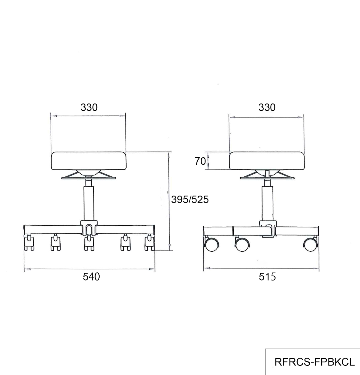 アール・エフ・ヤマカワ ラウンドキャスタースツール ブラック クローム脚 (張地:抗菌仕様) RFRCS-FPBKCL