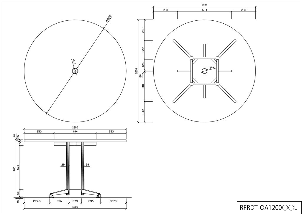 アール・エフ・ヤマカワ OAラウンドテーブル φ1200 ナチュラルII RFRDT-OA1200NA2L