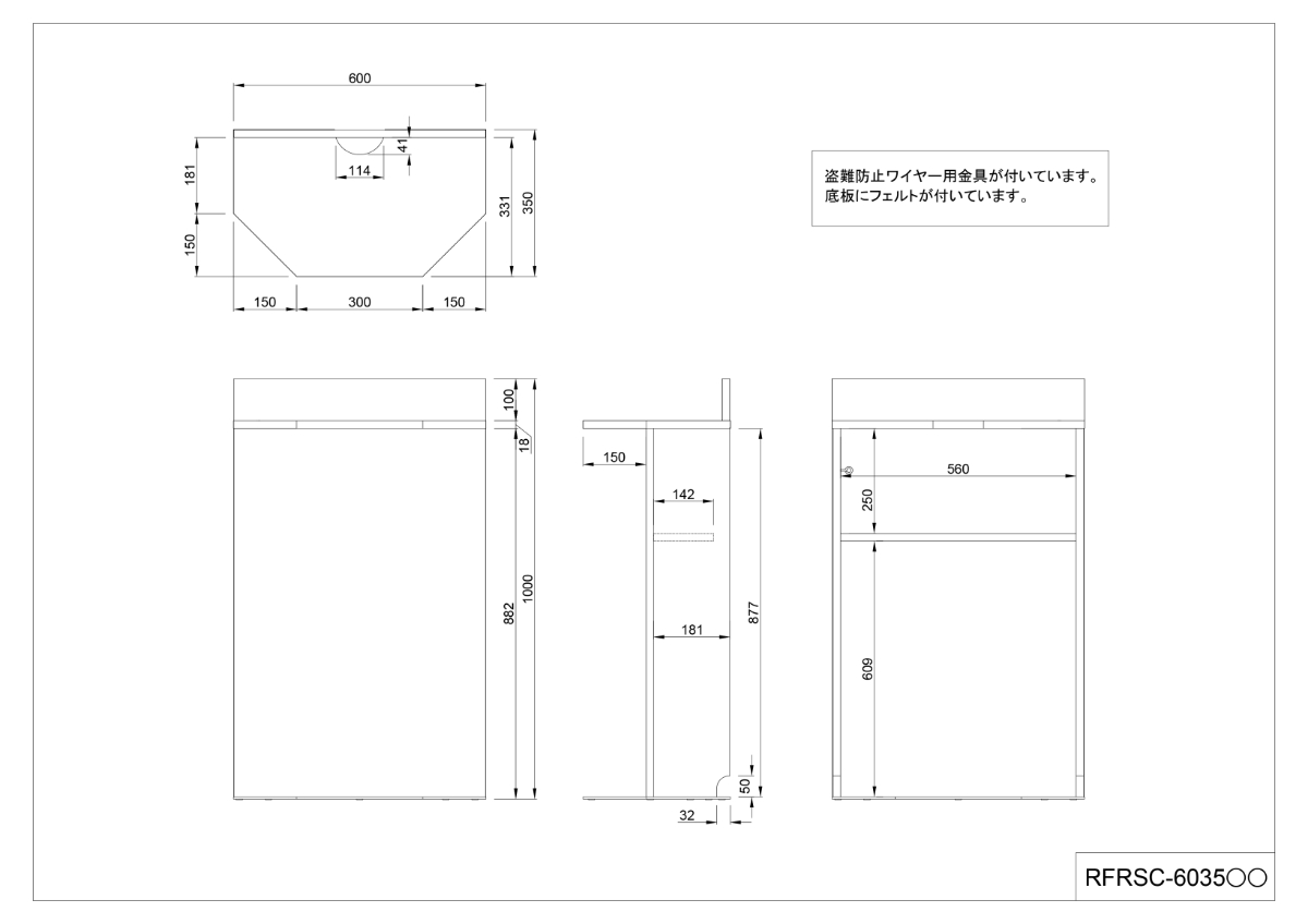 アール・エフ・ヤマカワ 無人受付スリムカウンター W600 ナチュラルII RFRSC-6035NA2