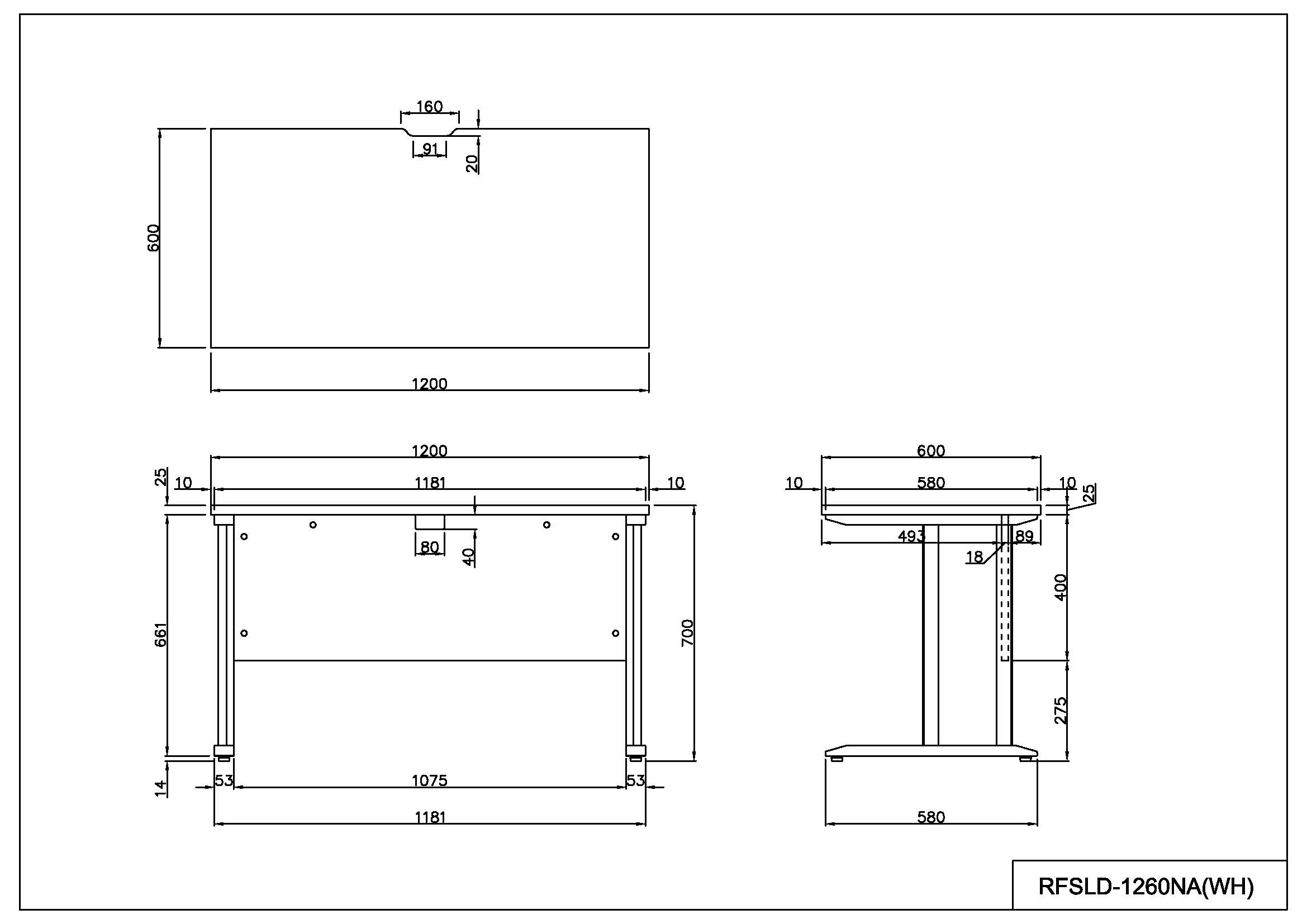 アール・エフ・ヤマカワ アソート スチール脚デスク W1200×D600 ホワイト ホワイト脚 RFSLD-1260WH-WL