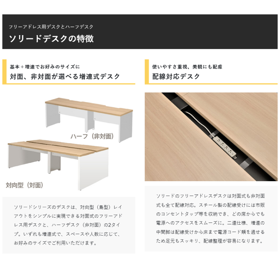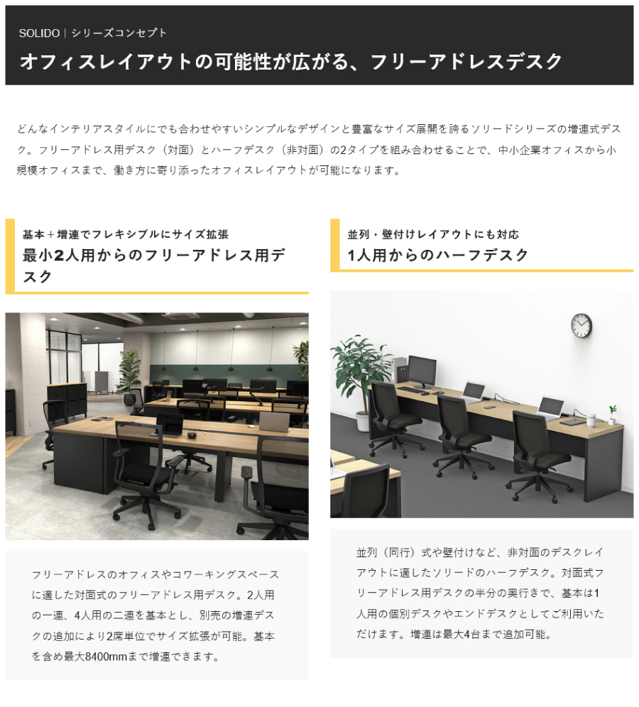 アール・エフ・ヤマカワ ソリード フリーアドレス用デスクII W2800×D1400 ホワイト×ブラック脚 RFTFT2-2814WH-BL