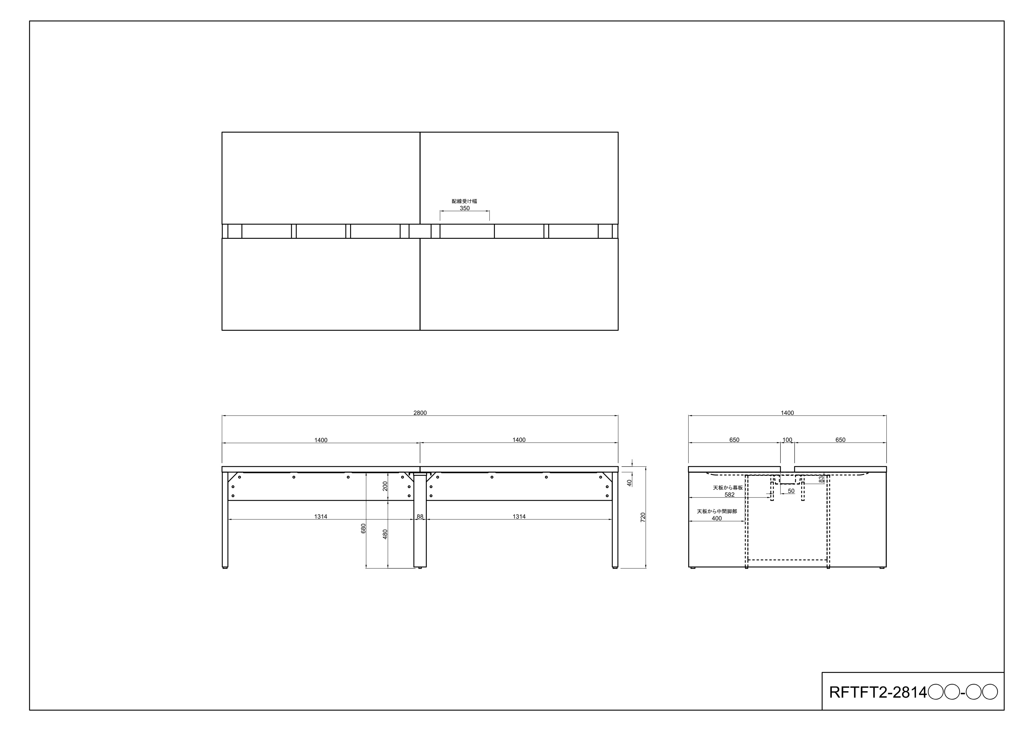 アール・エフ・ヤマカワ ソリード フリーアドレス用デスクII W2800×D1400 ホワイト×ホワイト脚 RFTFT2-2814WH-WL