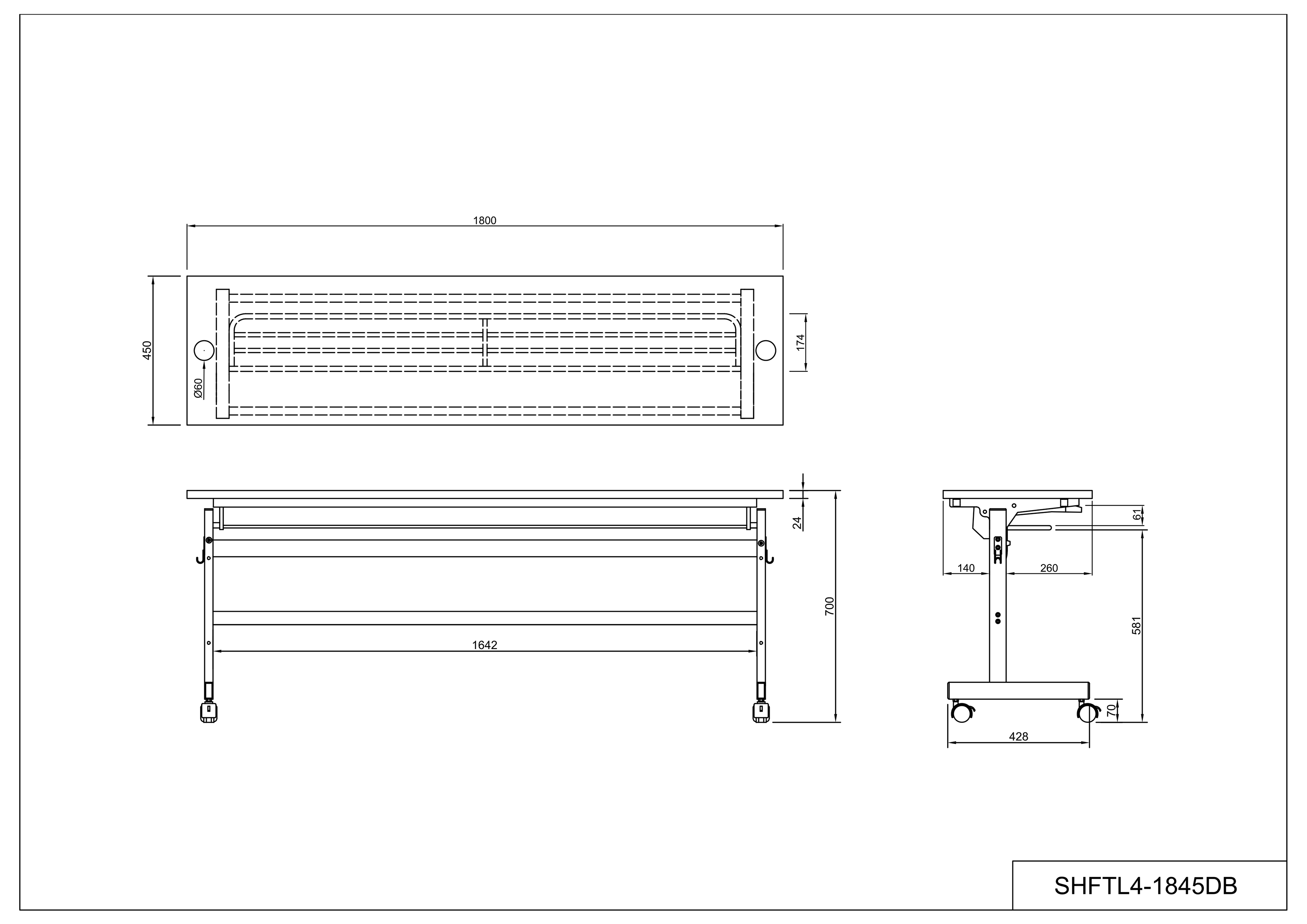 アール・エフ・ヤマカワ 配線機能付き ターミナルフォールディング テーブル4 W1800×D450 ダーク SHFTL4-1845DB