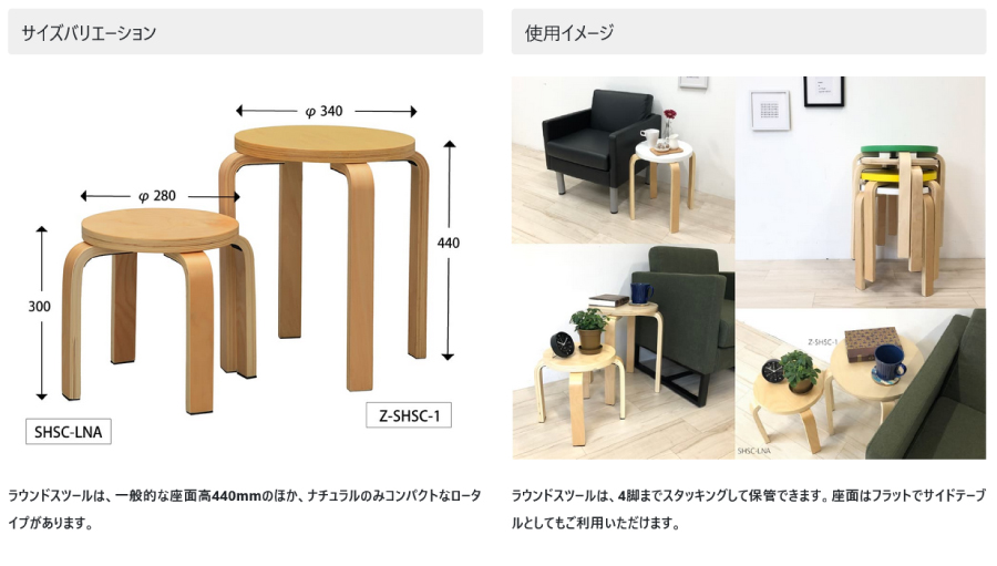 アール・エフ・ヤマカワ 木製丸椅子ロー ナチュラル SHSC-LNA