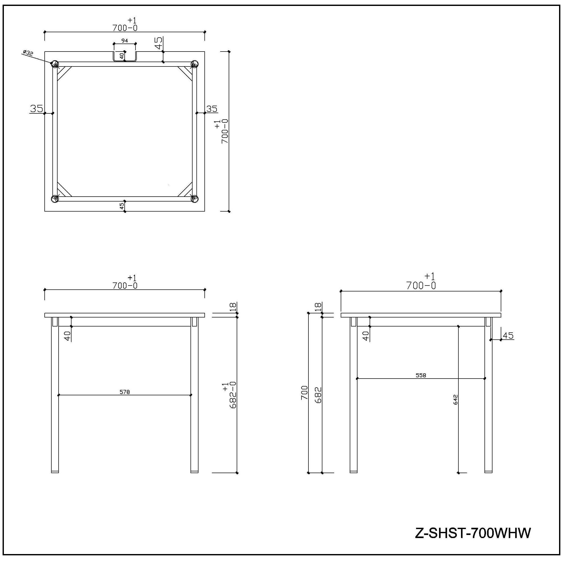 アール・エフ・ヤマカワ エスティー SHシンプルテーブル W700×D700 ホワイト (配線キャップ3色付属) Z-SHST-700WHW