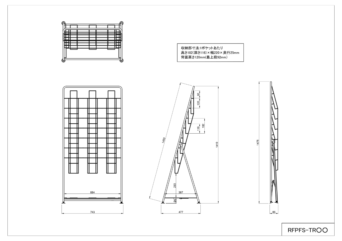 アール・エフ・ヤマカワ パンフレットスタンド 7段 トリプル ホワイト RFPFS-TRWH