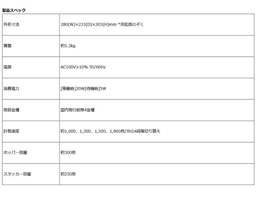 | ◆金額計算機能無し*枚数カウントのみ |