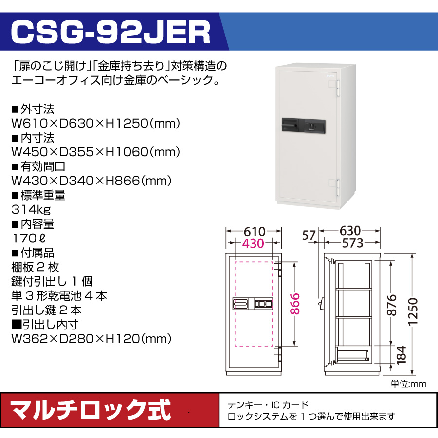(納期確認商品) エーコー EIKO 2マルチロック式 耐火金庫 準耐火時間2時間 /テンキー+ICカードタイプ CSG-92JER