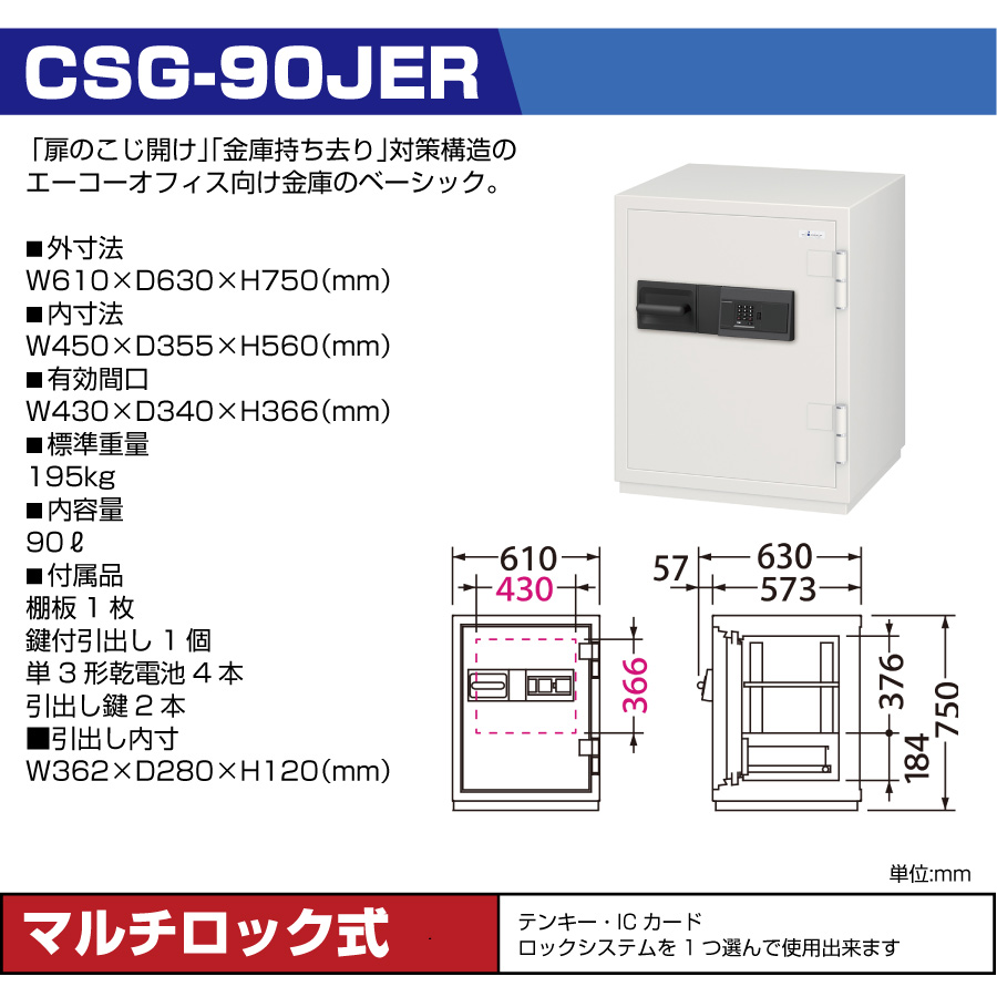 (納期確認商品) エーコー EIKO 2マルチロック式 耐火金庫 準耐火時間2時間 /テンキー+ICカードタイプ CSG-90JER
