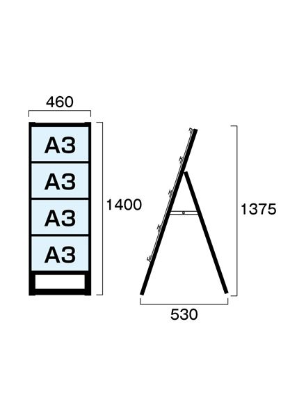 常磐精工 ブラックカードケーススタンド看板 A3横4片面 アームキャスターセット BCCSK-A3Y4K-KSET