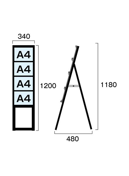 常磐精工 ブラックカードケーススタンド看板 A4横4片面ハイ アームキャスターセット BCCSK-A4Y4KH-KSET