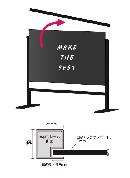 ● 面板= マーカーボード(ブラック/マグネット使用可能)※面板サイズH450×W600