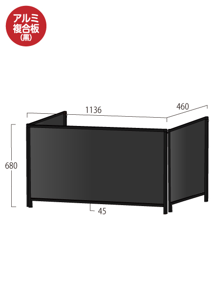 ●面板= アルミ複合板(黒)3mm厚※面板サイズH600×W1100/H600×W424