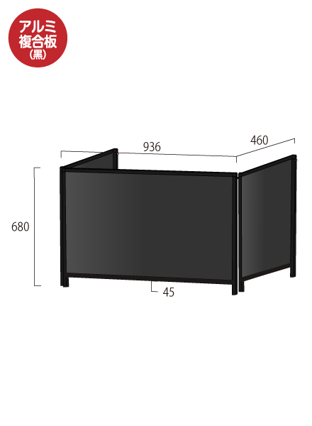 ●面板= アルミ複合板(黒)3mm厚※面板サイズH600×W900/H600×W424