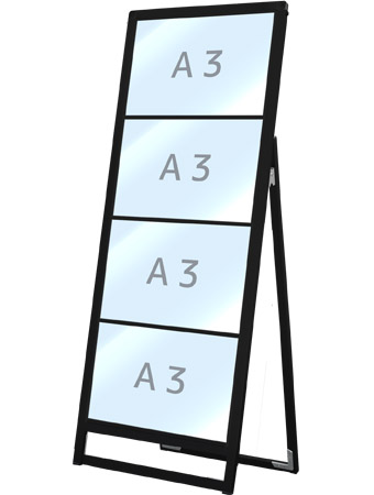 常磐精工 ブラックバリウスカードケーススタンド看板 A3横4片面 アームキャスターセット BVACCSK-A3Y4K-KSET