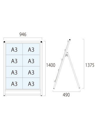 常磐精工 ブラックバリウスカードケーススタンド看板 A3横8片面 アームキャスターセット BVACCSK-A3Y8K-KSET