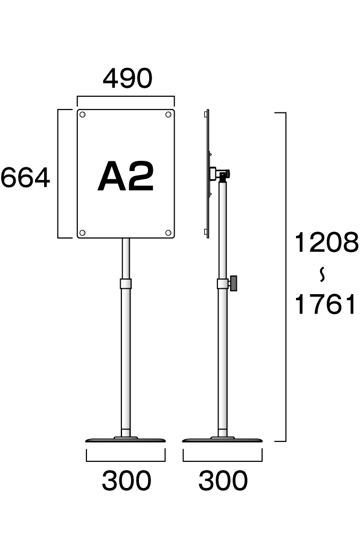 常磐精工 ポールスタンド フリーアングルアクリルスタンド150 A2ブラック FAACS150-A2B