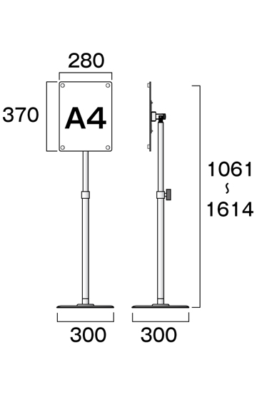 ●サイズ=全高(面板縦向き)1061~1614mm