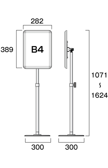 ●サイズ=全高(面板縦向き)1071~1624mm