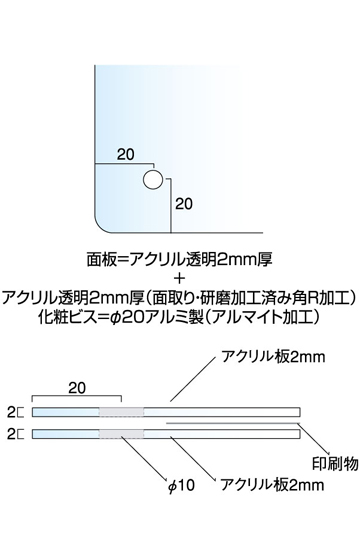 背面:アクリル透明2mm厚(面取り・研磨加工済み・角R加工)
