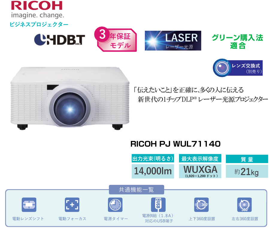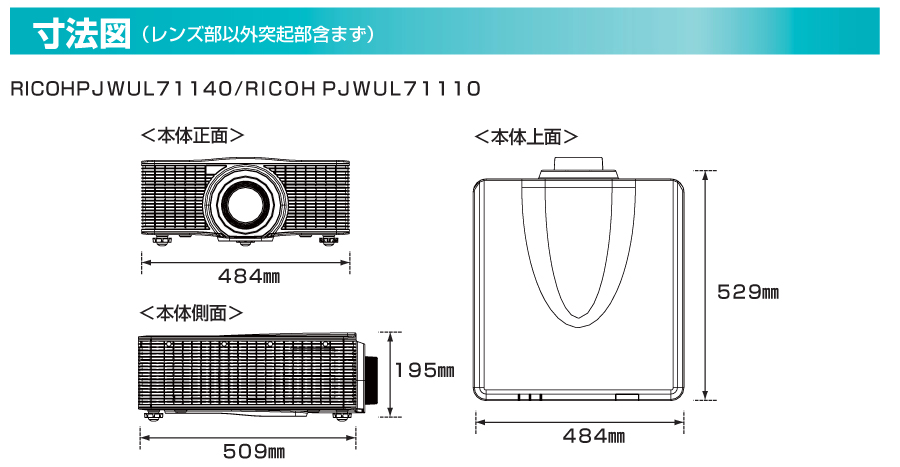 リコー RICOH PJ レーザー光源 DLPプロジェクター (レンズ別売) WUL71140 (896475)