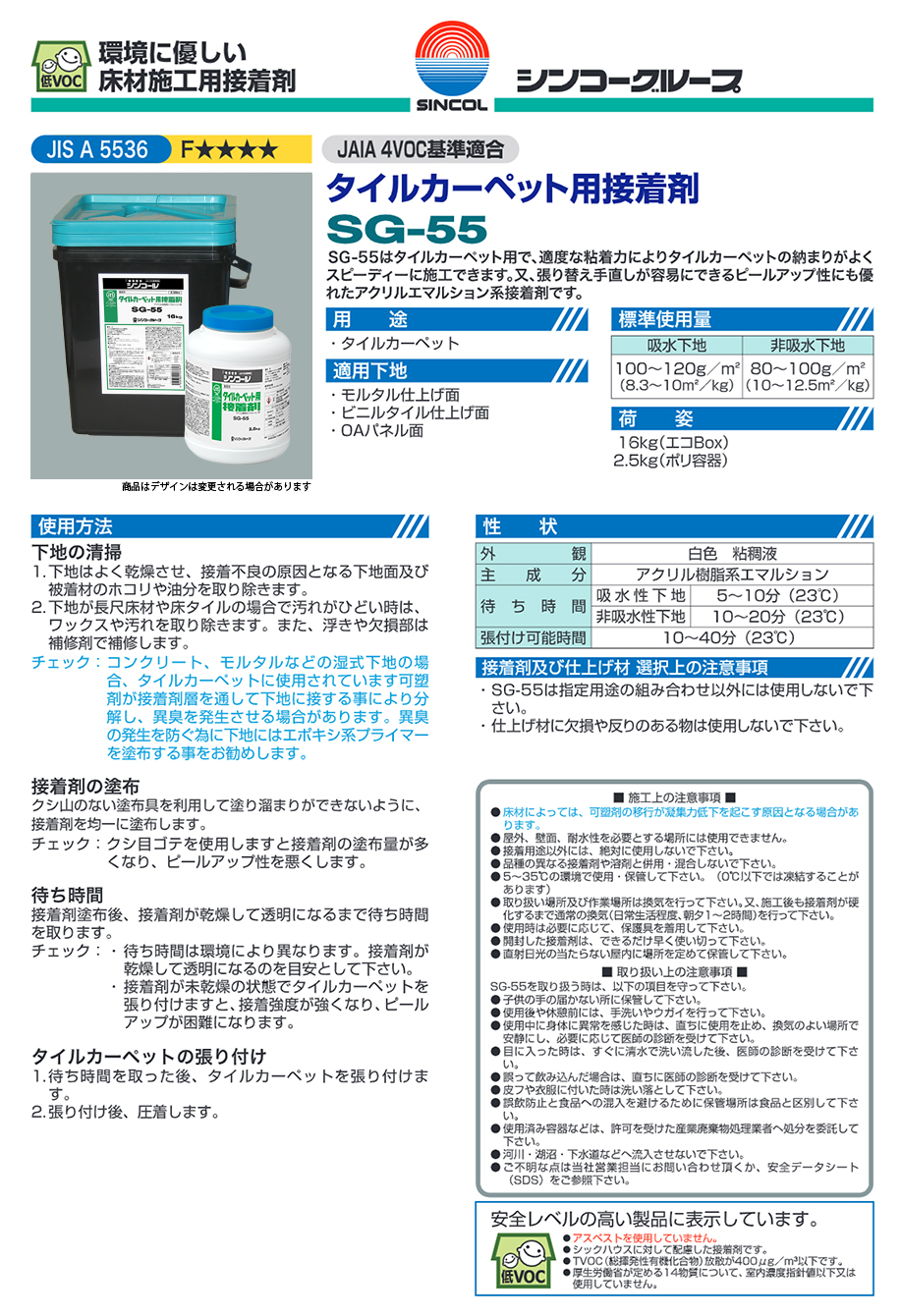 シンコール タイルカーペット用接着剤 SG-55 (容量:2kg入)