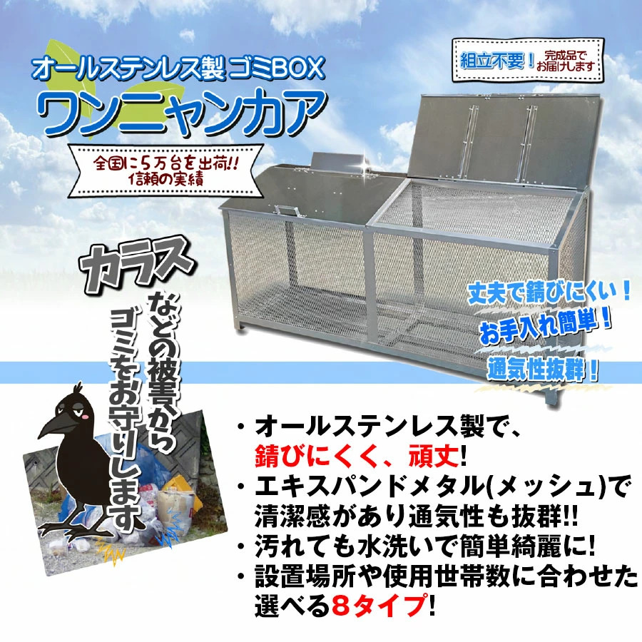 ステンレス光 オールステンレス製ゴミBOX ワンニャンカア 観音扉仕様 容量:863L/重量:41kg FH-180K NSSC FW2