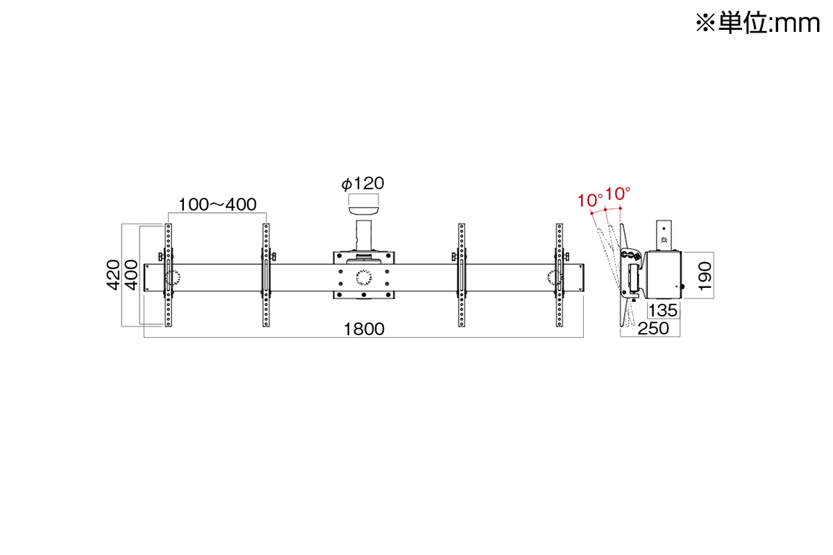 オプション ハヤミ工産 CHシリーズ テレビ取付金具 左右2連タイプ 【ブラック】 ~55V型対応 CH-M24B