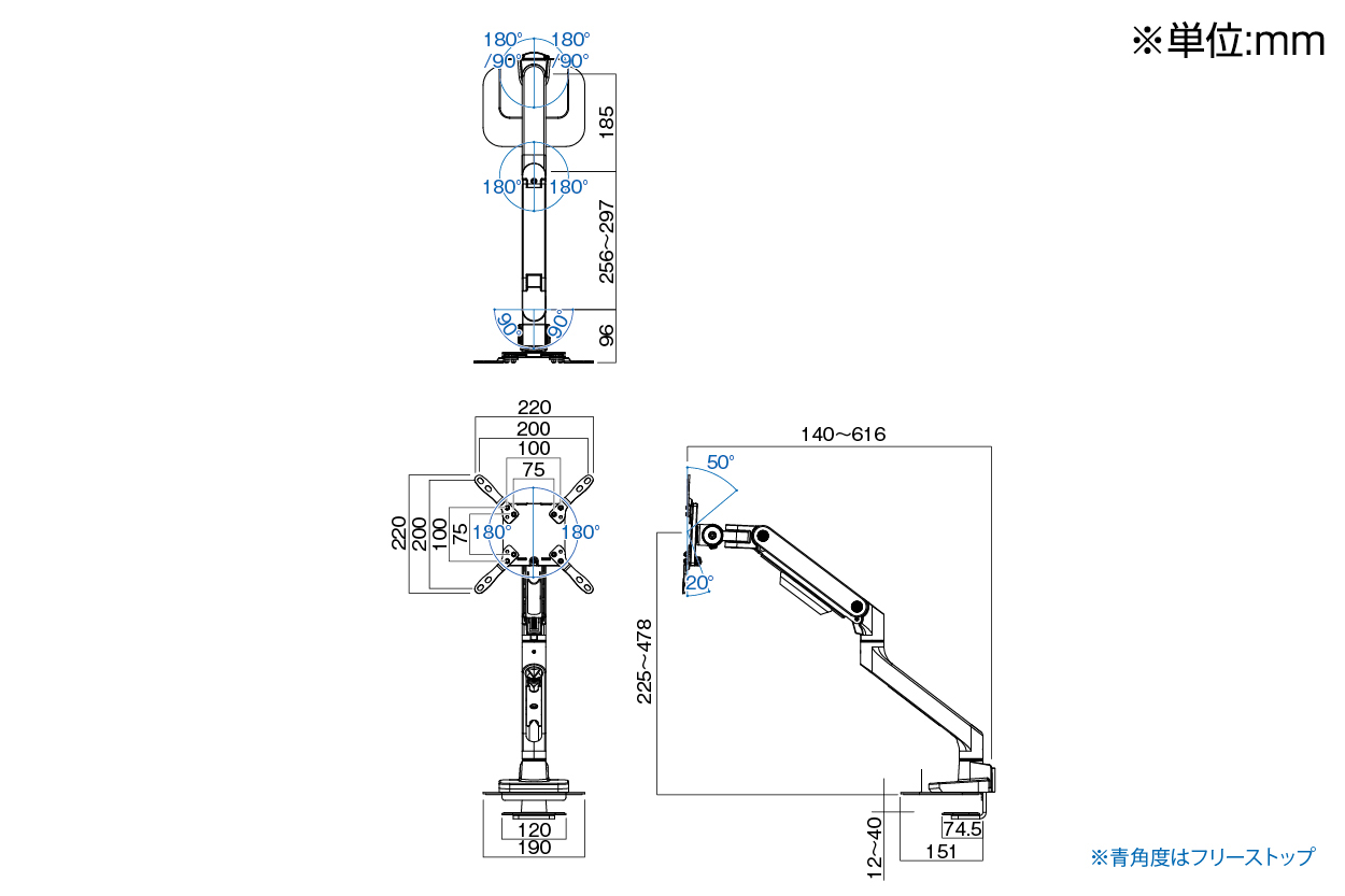 オプション ハヤミ工産 モニターアーム クランプ固定 MAシリーズ デスクトップタイプ ~50V型対応 MA-41D