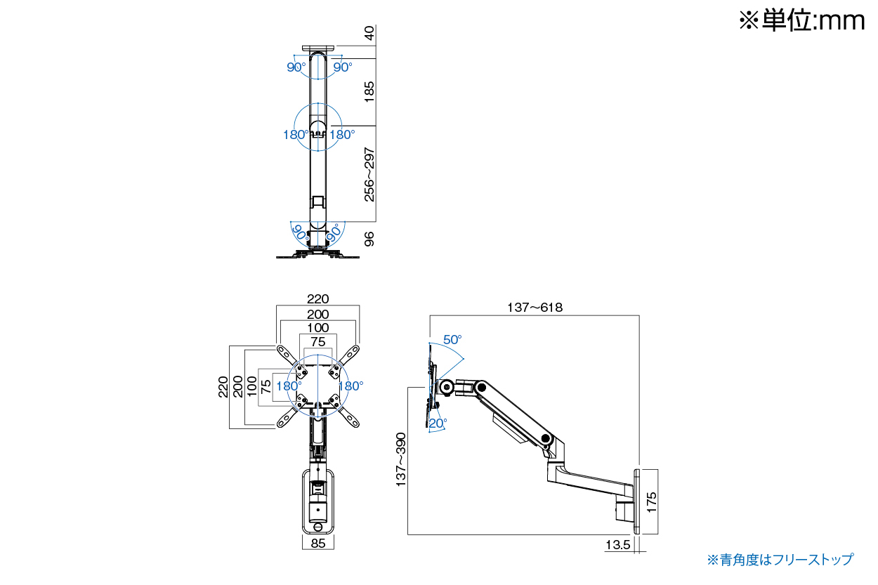 オプション ハヤミ工産 モニターアーム 壁付けタイプ MAシリーズ ~50V型対応 MA-41W