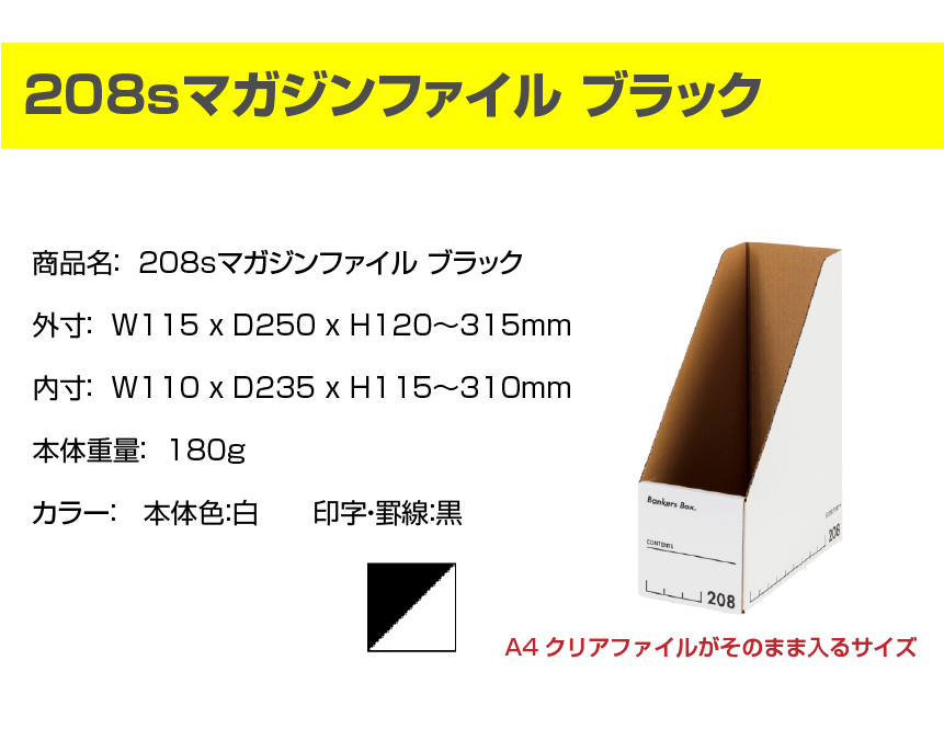 【まとめ買い】フェローズ バンカーズボックス 208sマガジンファイル ブラック (本体色:白/印字・罫線:黒)30個セット FE-1008201