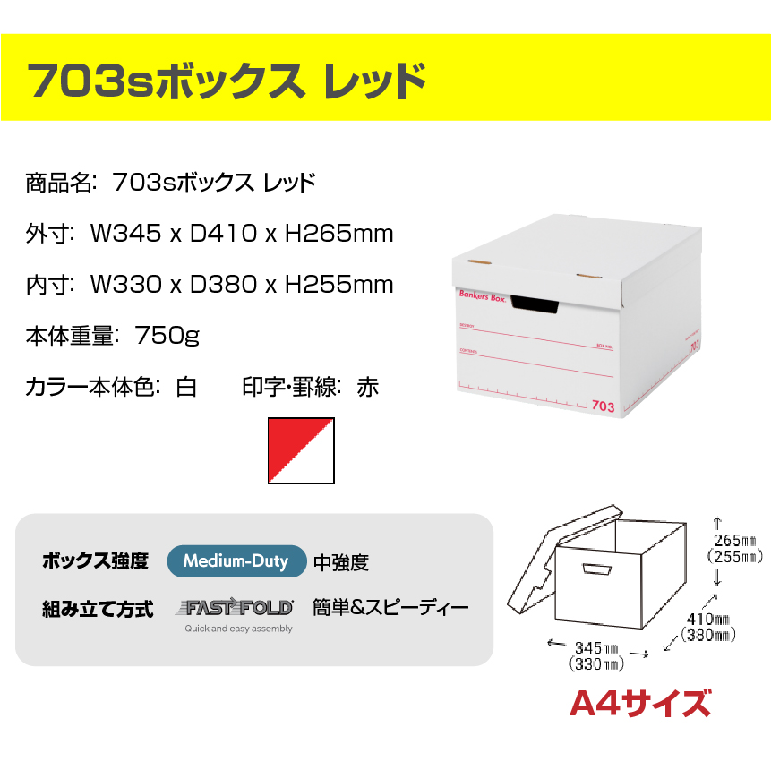 【まとめ買い】フェローズ バンカーズボックス 703S フタつき A4 (本体色:白/印字・罫線:赤)12個セット FE-1009601
