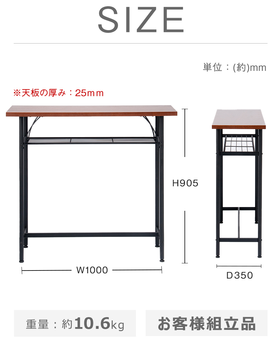 W1000×D350×H905mm