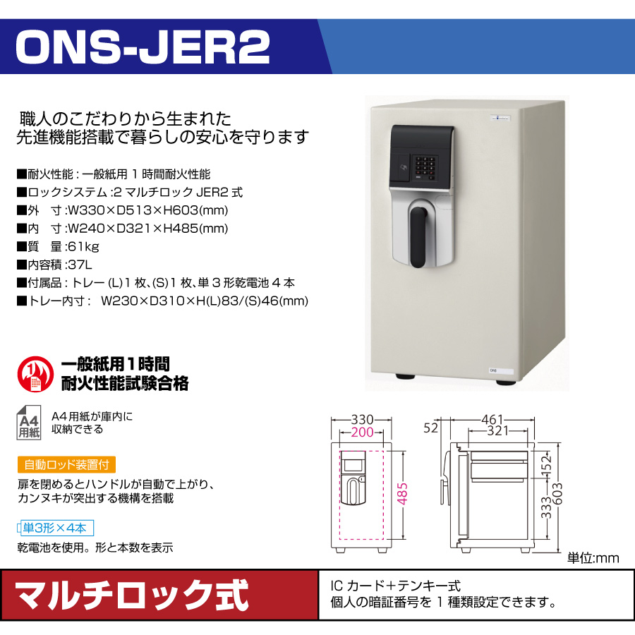 エーコー 2マルチロック式 JER2式 耐火金庫 ONS-JER2 準耐火時間1時間 ICカード+テンキー