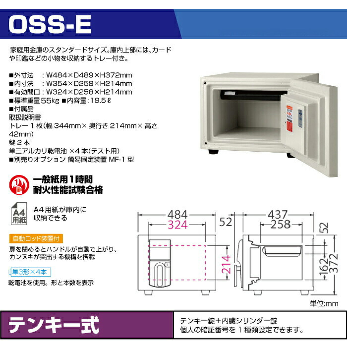 エーコー テンキー式 小型 耐火金庫|OSS-E
