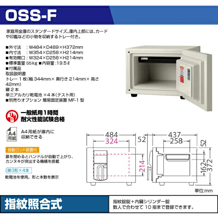 エーコー 指紋認証式 小型 耐火金庫|OSS-F