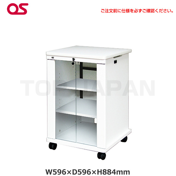 OS オーエス製 AVキャビネット ノーマル(棚板タイプ)900タイプ キャスターΦ60仕様 ガラス扉 ホワイト CS-900W1-G06